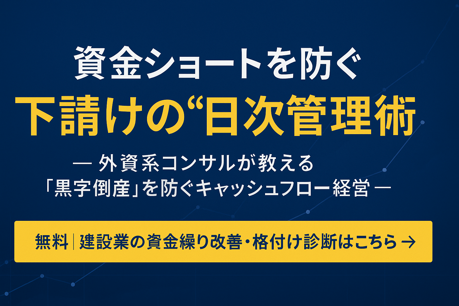 「黒字なのに資金が足りない」――それは多くの建設業の下請けが直面する課題です。 原因は、利益ではなく現金の動きを管理していないこと。 外資系コンサルタントの視点から、日次資金管理によって資金ショートを防ぐ仕組みと導入手順を解説します。