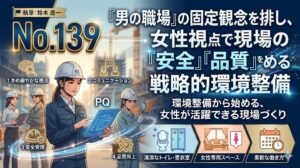 Read MoreNo.139 「男の職場」の固定観念を打破!女性視点で現場の「安全」「品質」を高める戦略的環境整備 No.139 「男の職場」の固定観念を打破!女性視点で現場の・・・