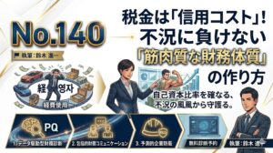 No.140 【共感】利益が出ると、つい節税対策(経費使用)ばかり考えてしまい、手元に現金が残らない。【解決策】過度な節税は会社の体力を奪う。税金は「信用コスト」と割り切り、自己資本比率を高めて、どんな不況が来てもびくともしない筋肉質な財務体質を作る。