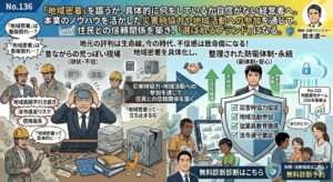 No.137 【共感】地域密着を謳っているが、具体的に何をしているかと言われると自信がない。【解決策】地元の評判は生命線。本業のノウハウを活かした災害時協力や地域活動への参加を通じて、住民との信頼関係を築き、「選ばれるブランド」になる。