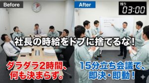 No,81 その「定例会議」、本当に必要ですか?社長の時給をドブに捨てない、15分で終わる「立ち会議」のススメ
