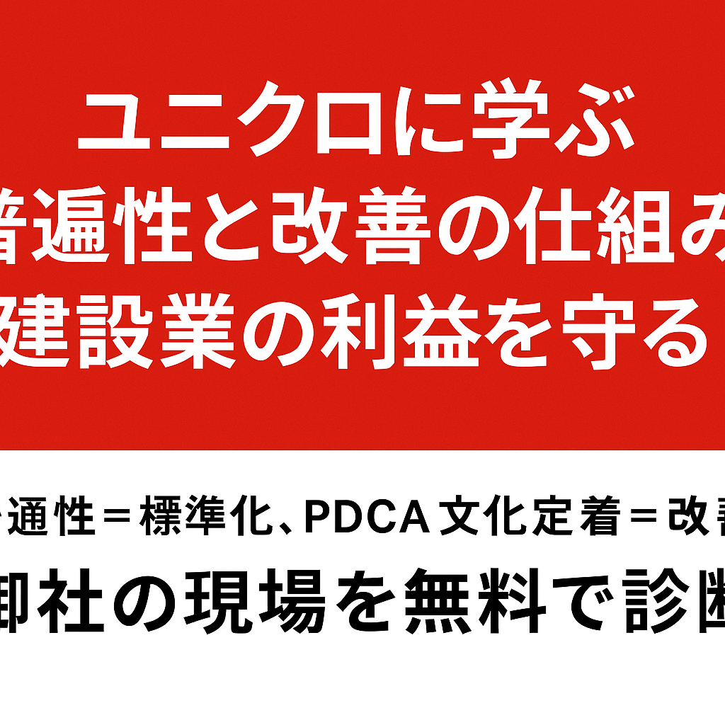 本ホワイトペーパーでは、この考え方を建設業に応用し、「普遍性=標準化」「改善=PDCA文化」 を軸に、利益率改善・品質安定・人材育成を同時に実現する方法を解説します。