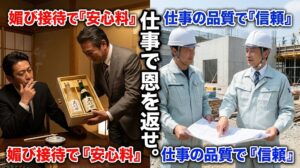 - 父(会長・対外):銀行交渉、古くからの元請けとの接待、業界団体の付き合い。